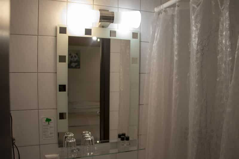 Alles wirkt sauber und ordentlich, wobei es einige Mängel gab wie einen defekten Schalter für das Licht, einen lockeren Handtuchhalter, die nicht regulierbare Fußbodenheizung (Nachts immer noch 23,9 Grad) die aber nach Rücksprache behoben werden sollen. Nicht zu ändern ist aber die Situation im Bad. Hier hat man wirklich kaum Platz und wenn man auf die Toilette muss, stößt man ans Waschbecken. Man muss also gelenkig sein, um sich dort hinzusetzen. Ansonsten ist aber auch hier alles da, was man benötigt inkl. 2 kleine Flaschen Hair & Bodyshampoo, einem Fön und 2 Gläser (Positiv: keine Einwegbecher aus Plastik, wie sie sonst oft gerne verwendet werden in anderen Unterkünften).