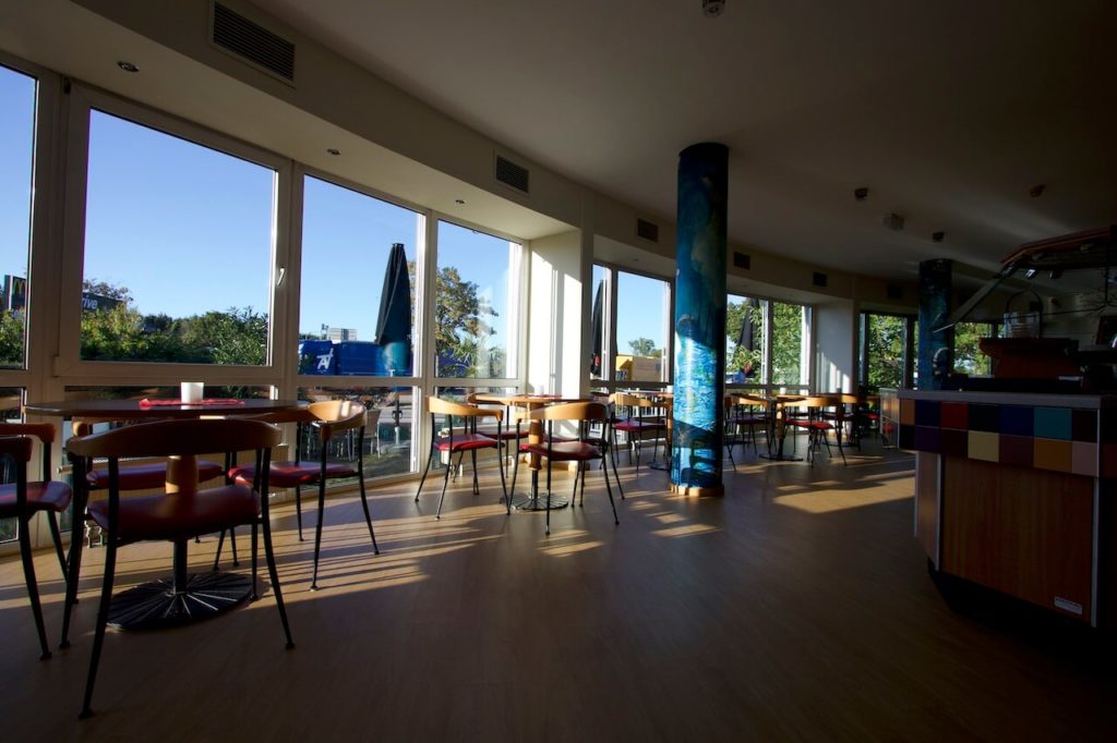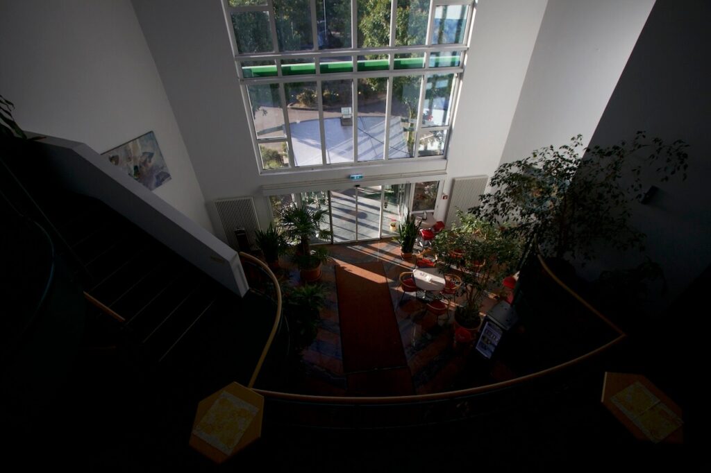 Viel Glas lässt entsprechend viel Sonnenlicht herein und so wirkt der Eingangsbereich sehr einladend. Die Rezeption ist 24 Stunden besetzt und neben den Sitzbereichen gibt es einen Mini Shop für all die Dinge, die man abends noch so braucht wie Getränke & Snacks.