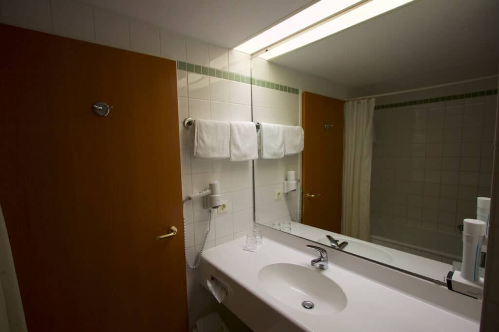 Das Badezimmer ist ebenfalls okay und man findet alles, was man benötigt um gut in den Tag zu starten.