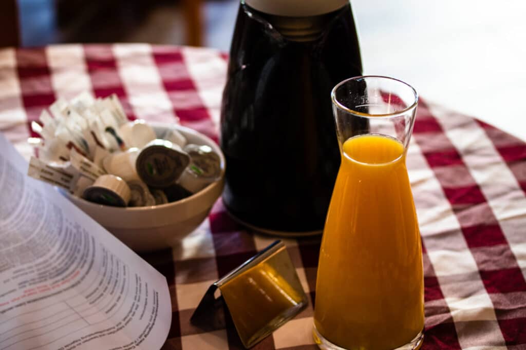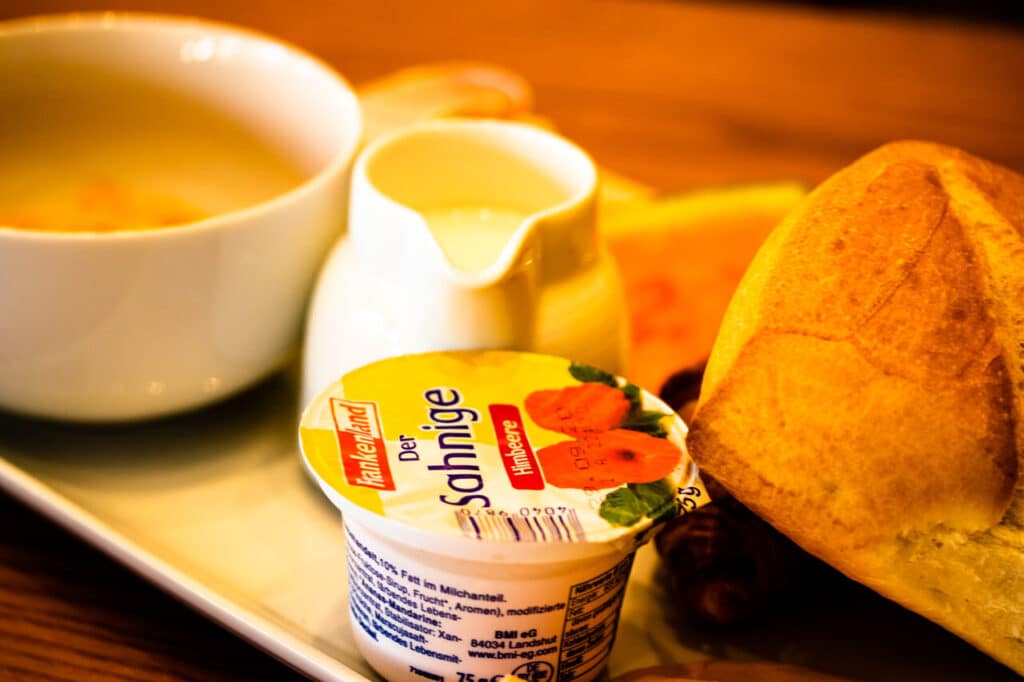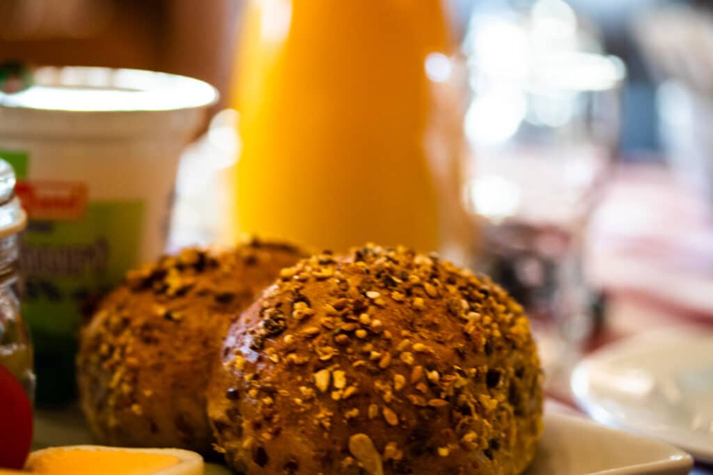Bereits ab 7:30 Uhr morgens kann man hier frühstücken. Dann ist es auch nicht so voll und noch angenehm ruhig. Später wird es dann recht voll (ab 8:15), denn alle wollen zum Europa Park… Wenn man draußen sitzt ist es nett, aber man ist dort außer Sichtweite und das Personal kommt nicht so oft vorbei leider. Wenn es voll ist dauert alles eben ein wenig länger, aber deshalb gehen wir ja meistens früh zum Frühstück… Alles hat gut geschmeckt und man kann so viel nachbestellen wie man möchte.