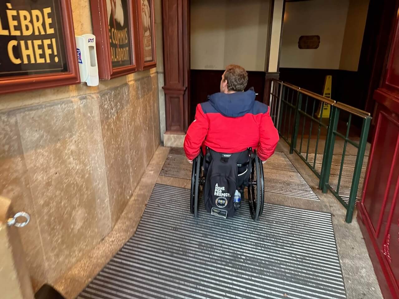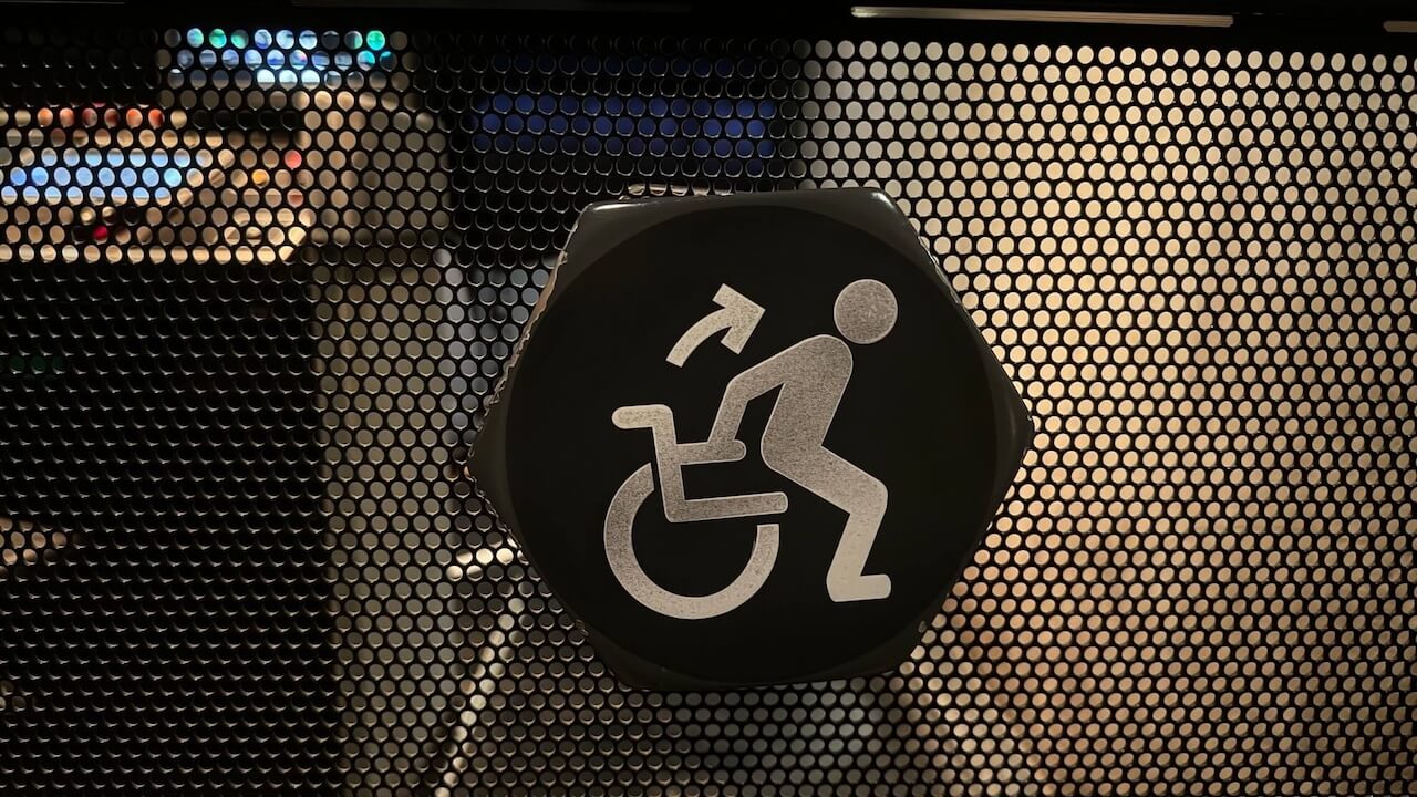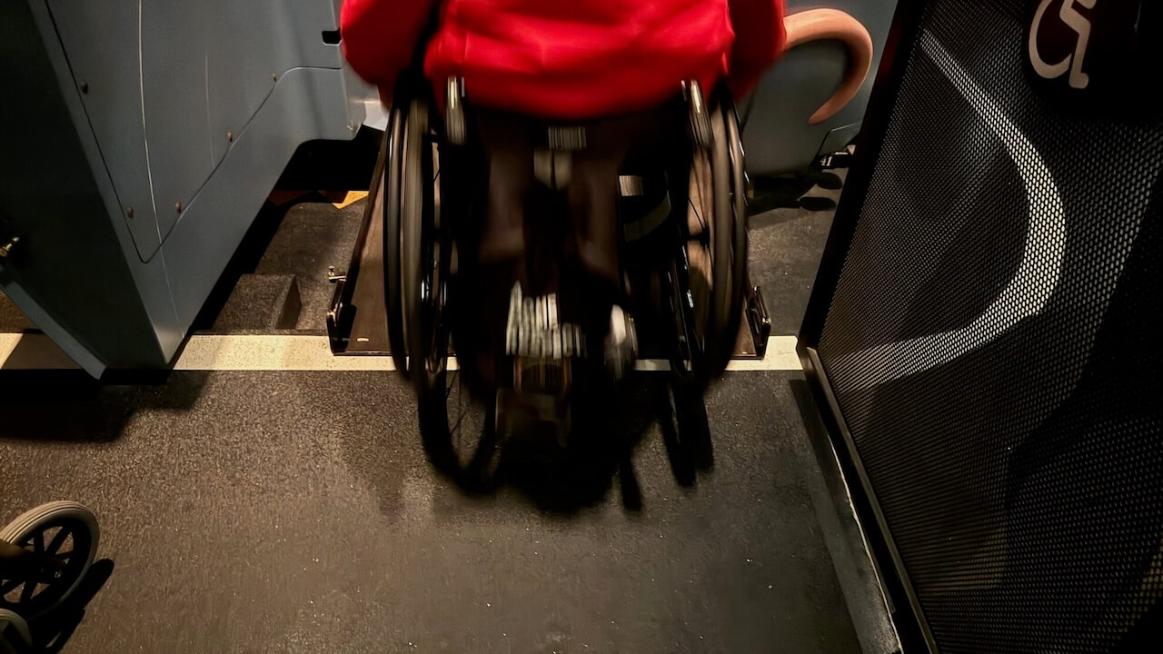 Dann parkt man den Rollstuhl an der Seite und kann den regulären Zugang nutzen. Am Ende der Fahrt wird der Rollstuhl von Mitarbeitern am Ausgang bereitgestellt.