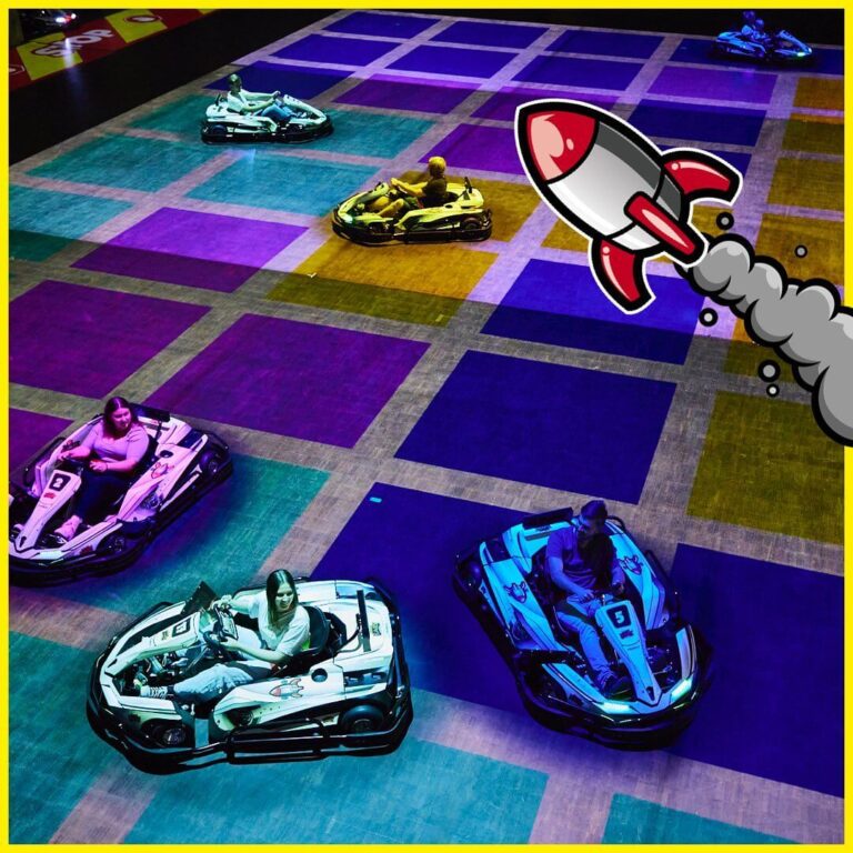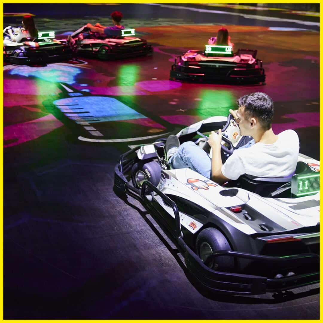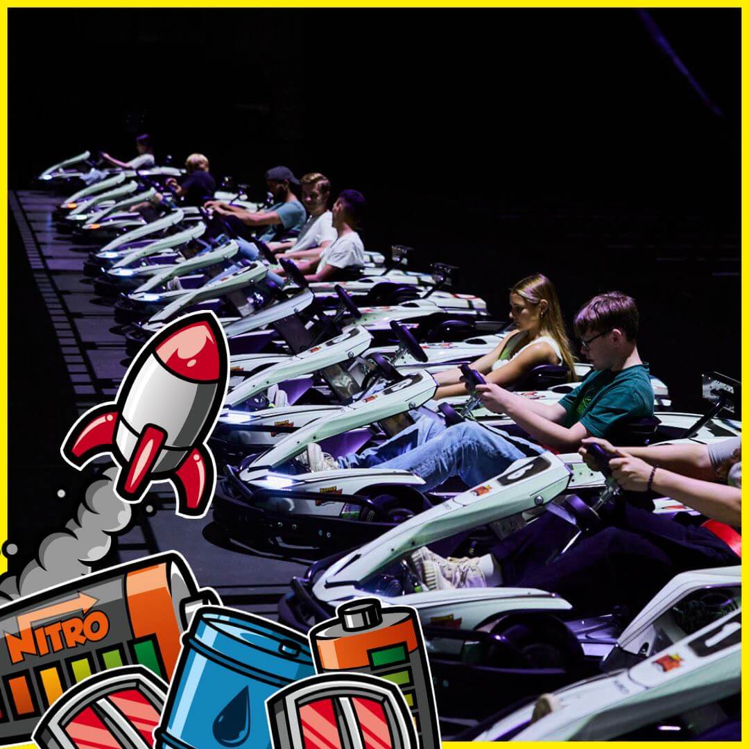 Durch die speziellen Funktionen an dem Lenkrad Deines E-Karts kannst Du Deinen Mitspielern das Leben schwer machen und so richtig Gas geben! Die verschiedenen Items, die auf die Strecke projiziert werden, sorgen für ein spannendes und unvorhersehbares Rennen.