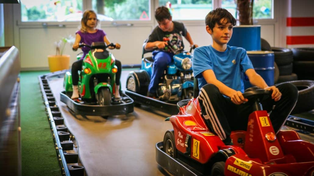 Im DRAGONPARC finden kleine und größere Kinder ihr großes Spiel- und Spaßvergnügen. Im Erdgeschoss kommen vor allem die noch ganz jungen Kinder auf ihre Kosten, z. B. im großen Kreativ- und Kleinkindbereich mit Hüpfburg und Bällchenbad. Eine Etage höher geht für die größeren Kinder die Post ab mit jeder Menge Action: Softshooter-Arena mit Ufo und Ballsaugern, Spiralröhrenrutsche, Wellenrutsche, Trampoline, Soccerfeld, Rollenrutsche, Klettervulkan, Wabbelberg, Rodeo-Bullen und Electro Cars … Spaß hoch 10 ist in dem 2.700 m² großen Kinderbereich des JOY’N US DRAGONPARC garantiert!