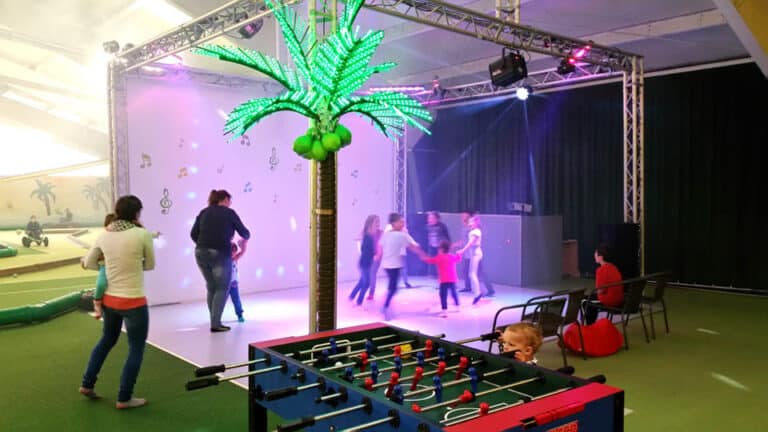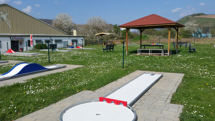 Seit August 2014 haben wir auch einen Minigolfplatz im Außengelände. Die 18 Bahnen sind sowohl für Erwachsene, als auch für Kinder geeignet. Die Schlägerausgabe befindet sich an der Flummyland Kasse. Der Minigolfplatz gehört zwar zum Flummyland, aber er kann separat genutzt werden.