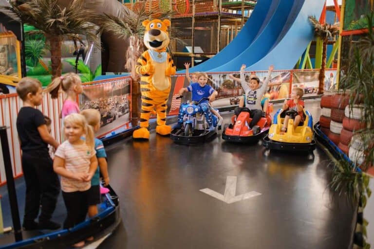Hier erwartet euch eine riesige Dschungelwelt mit einem interaktivem Trampolinpark. Klettergerüste, Soccer-Arena, Kartbahn, Rutschen und vieles mehr für einen Tag voller Spaß, Action und Abenteuer.