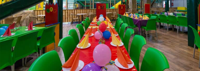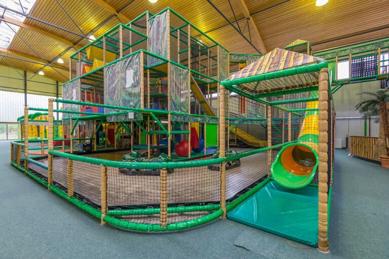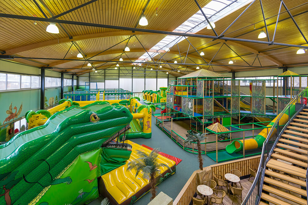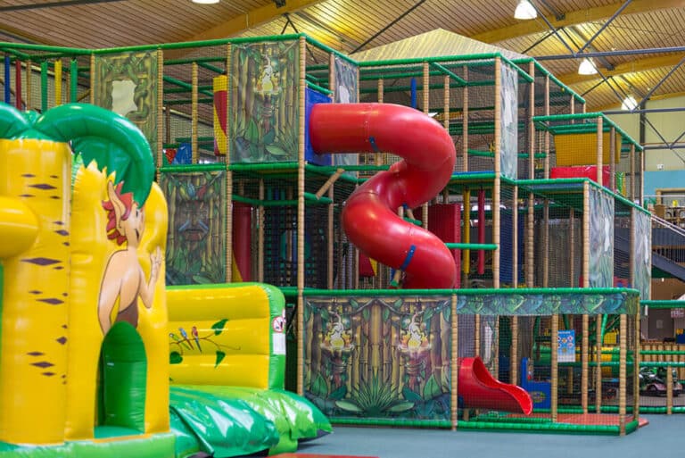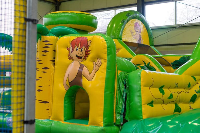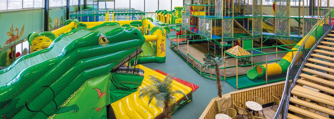 Im Mittelpunkt steht das Riesenklettergerüst, das fast bis unter die Decke reicht! Auf dem Monster Wabbelberg gilt es, nach oben zu krabbeln und sich dort zu halten. Vier Rutschen stehen zur Verfügung: eine 7,50m Riesenrutsche, eine lange Spiralrutsche, eine Wellenrutsche und eine Speedrutsche. Insbesondere die Jungs sind von dem 4er Softball-Shooter begeistert, mit dem sich Schaumstoffbälle abfeuern lassen.