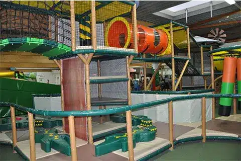 Der RhönRäuberPark bietet jede Menge zum Klettern, Entdecken und Fahren an. So könnt ihr euch auf den vielen Rutschen, Trampolinen oder Hüpfburgen vergnügen. Eine Kartbahn, ein Kletterlabyrinth sowie eine Rollenrutsche sorgen für viel Action und Abenteuer. Für die kleinen Gäste gibt es einen speziellen Bereich mit Trampolinen. Für geübte und sportliche Kinder sowie junge Erwachsene bietet sich der Hochseilgarten an. Mit einer Höhe von 7 Metern solltet ihr dabei schwindelfrei sein. Unter unserer fachmännischen Anleitung werdet ihr in die Welt des Kletterns eingeführt und unter stetiger Beobachtung gut abgesichert. Traut ihr euch, die Kletterwand zu bezwingen?