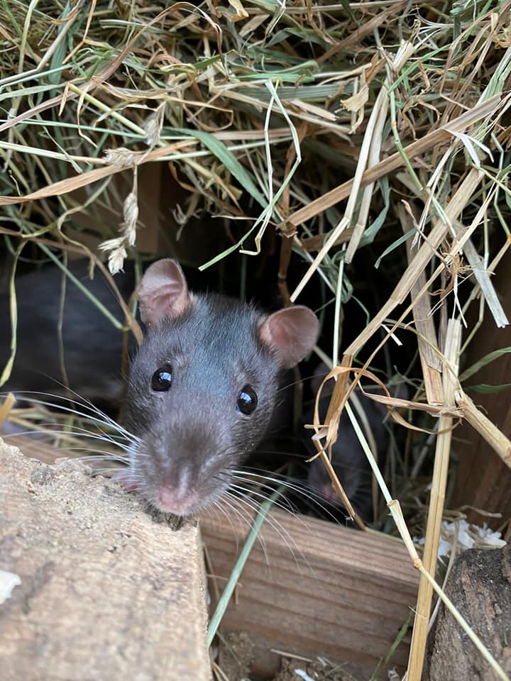 Unser neuster Zugang war das Minischwein „Bifi“, sie wurde angeblich im Dreieichpark ausgesetzt und dort gefunden. „Bifi“ hatte einen massiven Räudebefall, deshalb war sie sehr gereizt und auch bissig am Anfang, aber das ist ja auch klar, es hat ja auch schlimm gejuckt. Mittlerweile hat sie jetzt fast 20 kg zugenommen und lebt bei unseren anderen beiden Schweinen „Scheffe“ und „Rosi“.