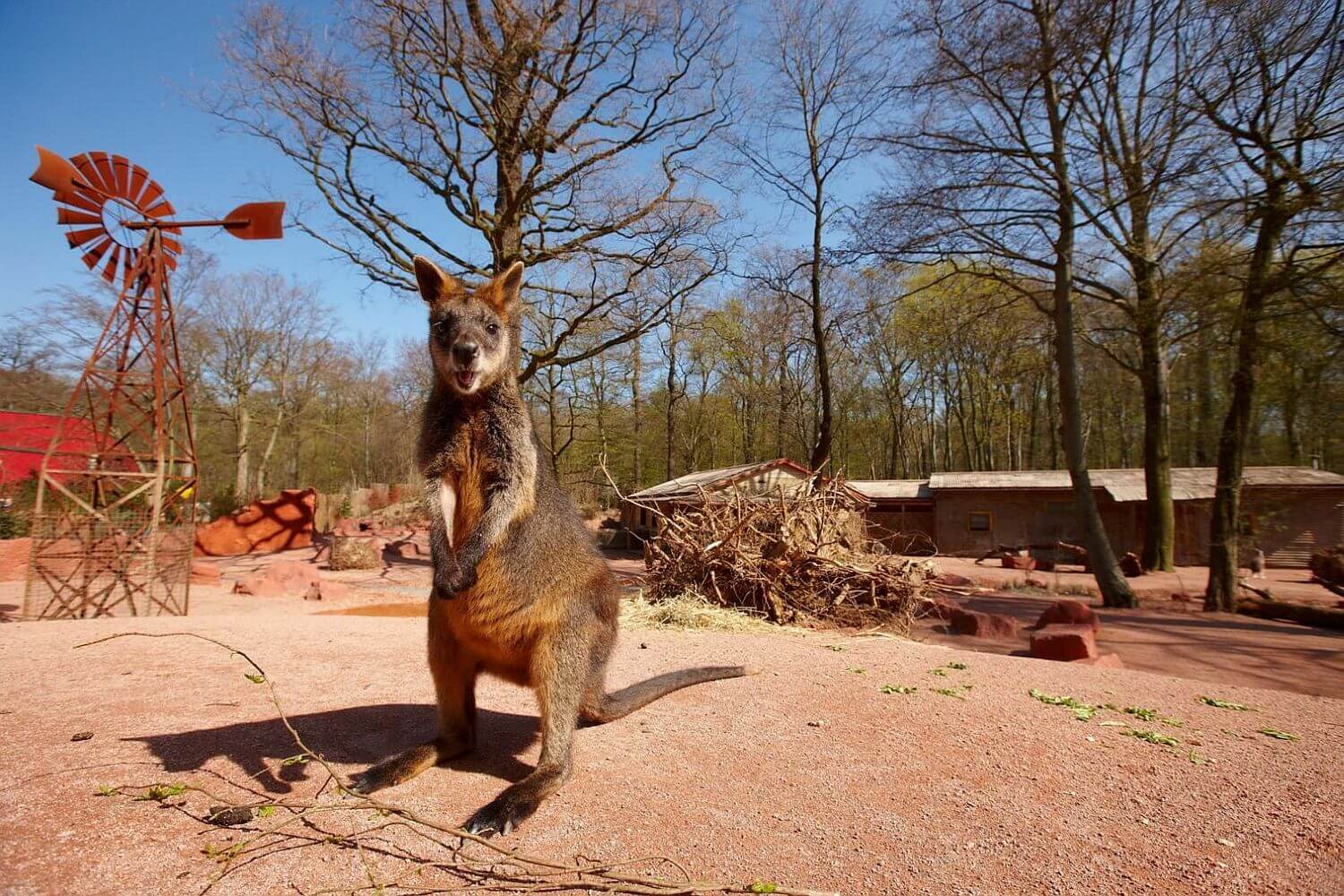 Im Outback zieht Wombat-Junge Cooper alle Aufmerksamkeit auf sich. Der erste Nachwuchs bei den Tasmanischen Nacktnasenwombats seit 30 Jahren ist deutschlandweit eine echte Seltenheit. Zoo-Besucher brauchen ein wenig Geduld und auch etwas Glück, den kleinen Plumpbeutler zu entdecken. Oft locken köstliche Süßkartoffeln Jungtier und Mutter zur Mittagszeit aus dem Bau. Nebenan hüpfen Rote Riesen und kleine Sumpfwallabys durch die markante rote Erde des australischen Kontinents.
