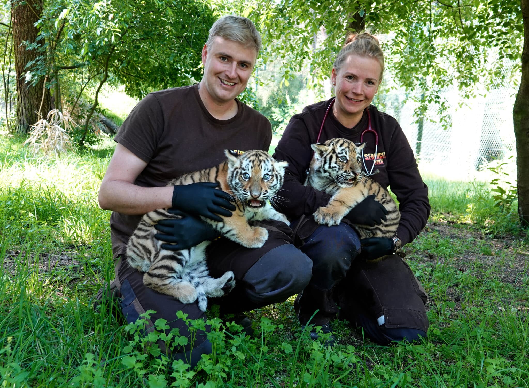 Das bestätigen auch die ersten Untersuchungen von Zootierärztin Venna König. Beide Jungtiere sind gut entwickelt und agil, sie wiegen aktuell 7,4 und 7,8 Kilogramm. Nach dem letzten Check ist nun auch klar, dass es zwei Kater sind. Ausgewachsen können diese bis zu 300 Kilogramm schwer werden.