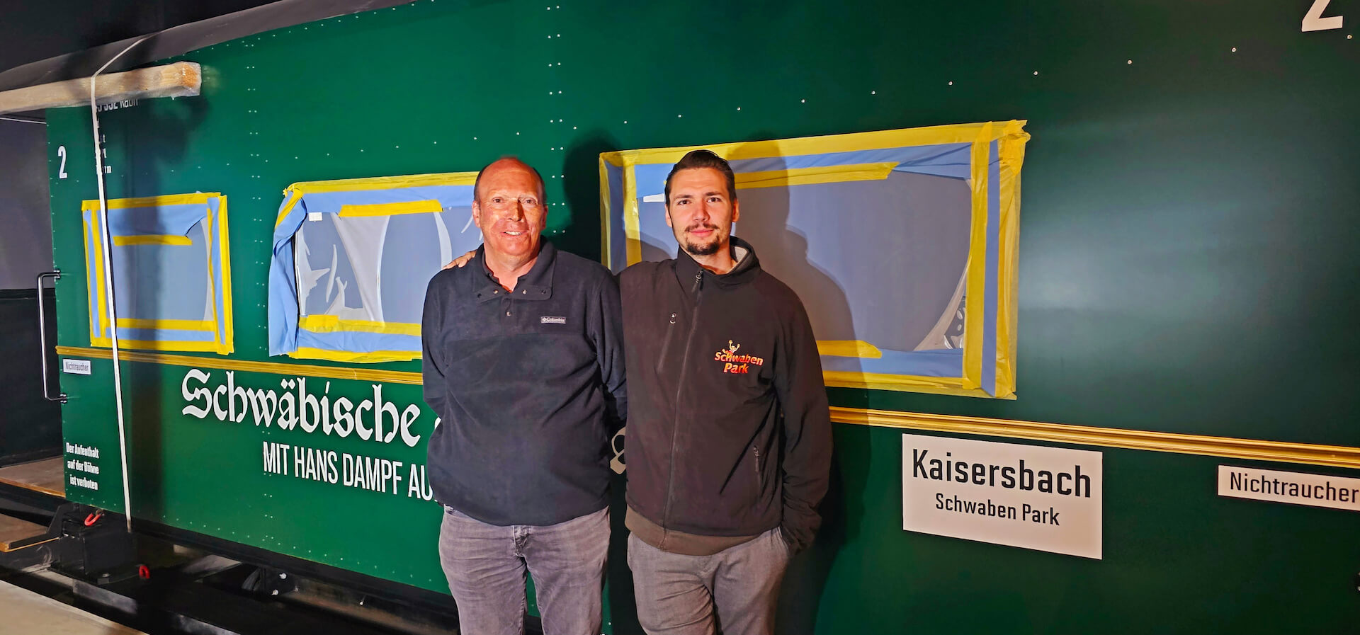 Foto: Hans Dampf Zug mit den Geschäftsführern Thomas & André Hudelmaier @Schwaben Park