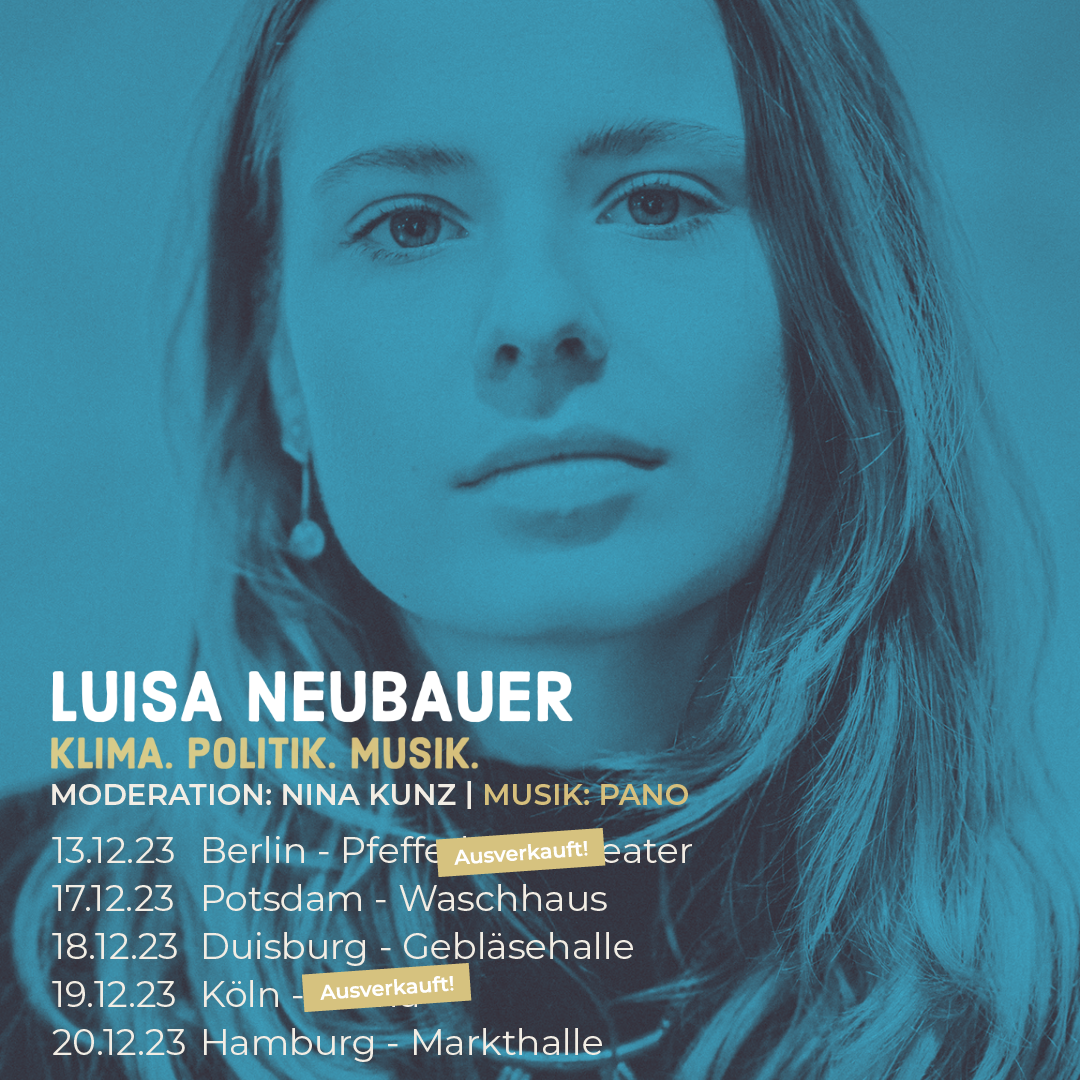 Sie ist eine der Hauptorganisatorinnen des von Greta Thunberg inspirierten Schulstreiks Fridays for Future und ist nicht nur Klimaaktivistin sondern auch Bestsellerautorin des Buchs „Gegen die Ohnmacht“. Bereits im Frühjahr ging Luisa Neubauer mit ihrem aktuellen Buch „Gegen die Ohnmacht“ auf Lesereise und begeisterte vor vollen Rängen das Publikum: „Schlagfertig und unterhaltsam“, kommentierte die Rheinische Post.
