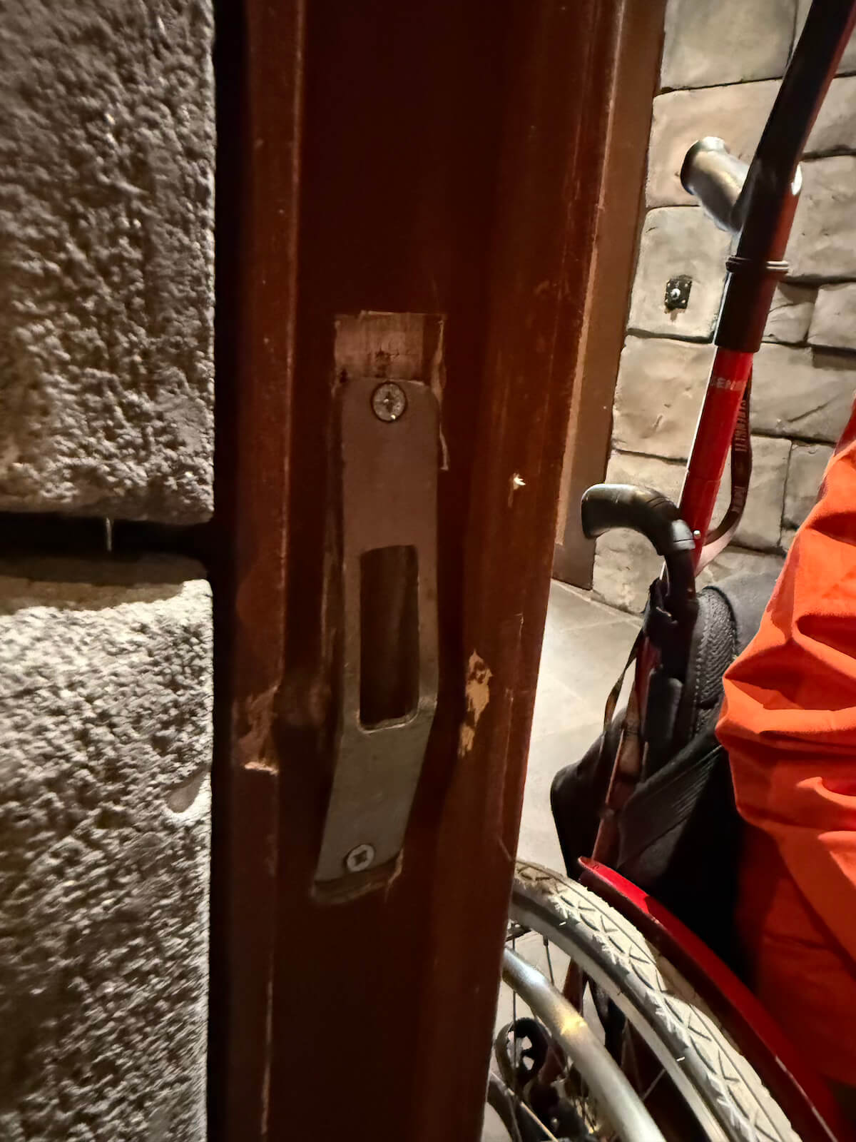 Wir bekommen einen Tisch zugewiesen, der sehr gut mit dem Rollstuhl unterfahrbar ist. Auch haben wir hier viel Platz und könnten auch in einer größeren Runde hier gemütlich sitzen.