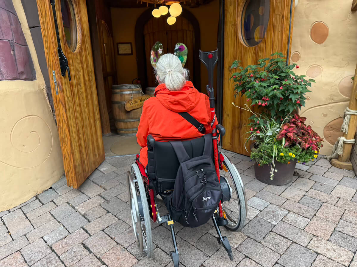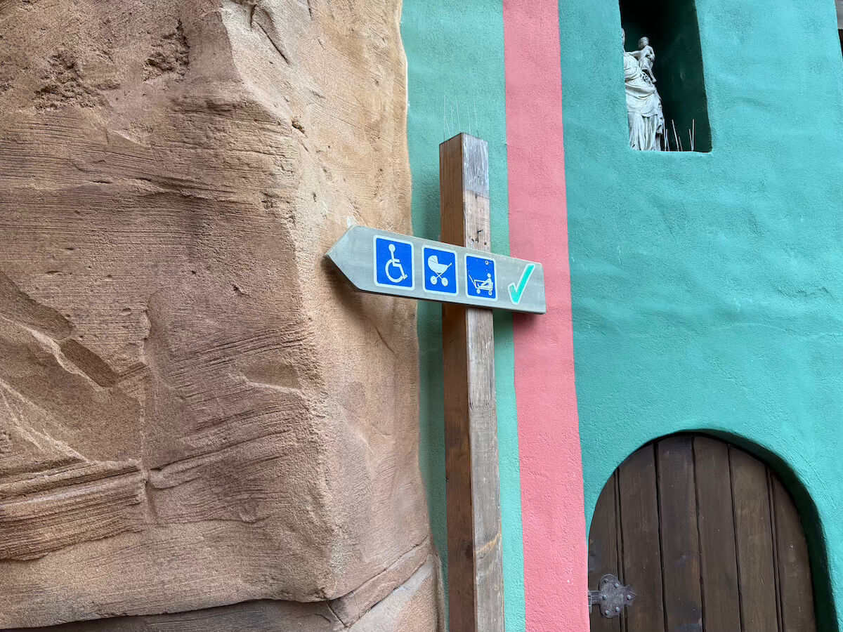 Zum Glück ist es nicht mein erster Besuch im Phantasialand und so machen wir uns auf den Weg nach Klugheim, wo es eine barrierefreie Toilette gibt.