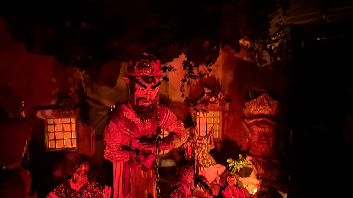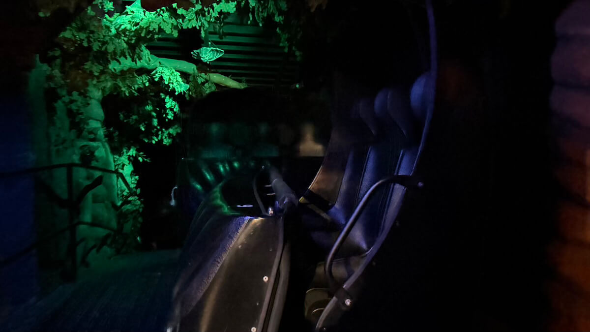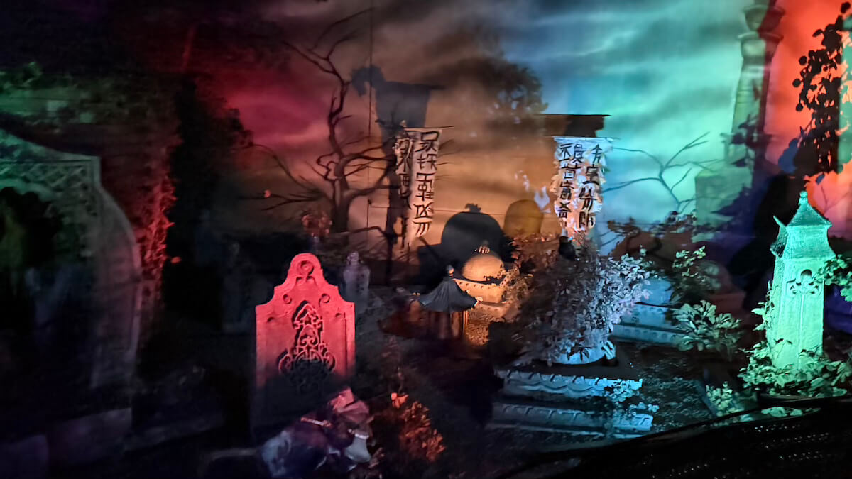Zum Abschied eine Runde mit der Geister Rikscha. Die Geisterbahn im Freizeitpark, die wir beide aus Kindertagen schon kennen. Ich habe keine anerkannte Sehbehinderung, aber die Dunkelheit im Anstellbereich macht mir jedes Mal zu schaffen. Aber auch das haben wir gemeistert. Natürlich wieder nur mit Gehhilfe, denn der Rollstuhl muss draußen bleiben, wie bei fast allen Fahrgeschäften.
