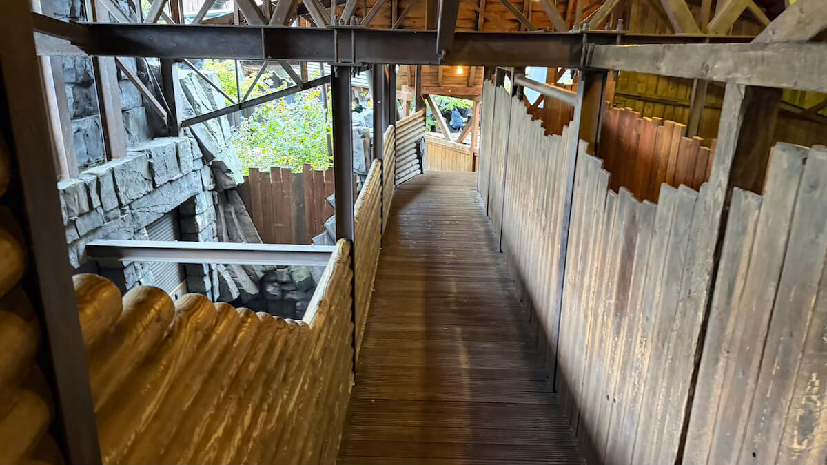 Viele Treppen und lange Wege. Man könnte hier oder da abkürzen, doch die Ketten verhindern eine kürzere Wegstrecke. So muss Ursula unnötig viel laufen. Wir können aber in einem durch laufen und müssen nicht warten. Es ist nicht viel los heute im Freizeitpark. Deshalb geht es nach dem Erhalt der Brille direkt in den Park. Die Gehilfe wird Ursula netterweise vom Mitarbeiter abgenommen. Niemand fragt, ob Ursula eigenständig im Falle einer Evakuierung aussteigen kann. Die Fahrt geht los und wir haben beide Spaß. Leider ist bei meiner Brille eine kleine Störung und so fahre ich letztendlich ohne Brille.